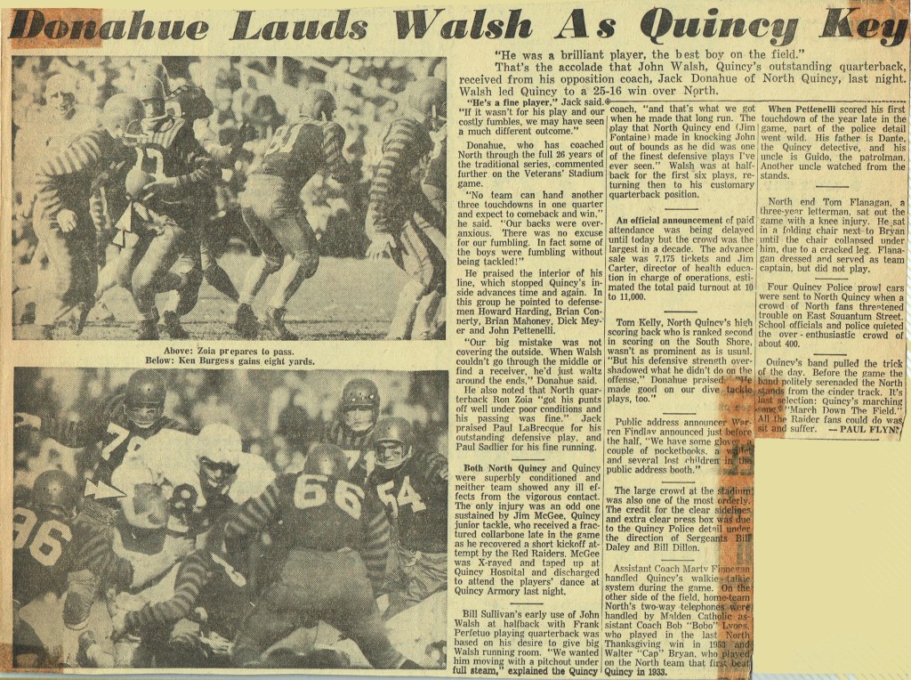Game 8: Quincy 25 – North Quincy 16 (November 27, 1958)