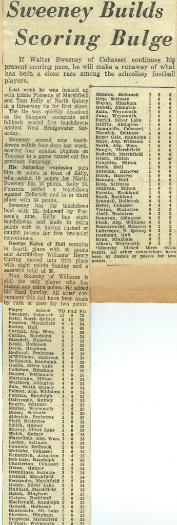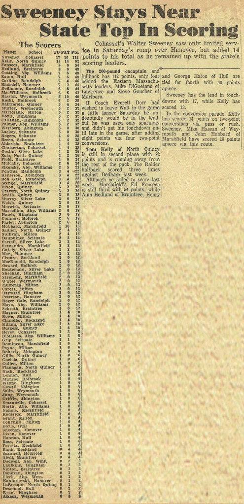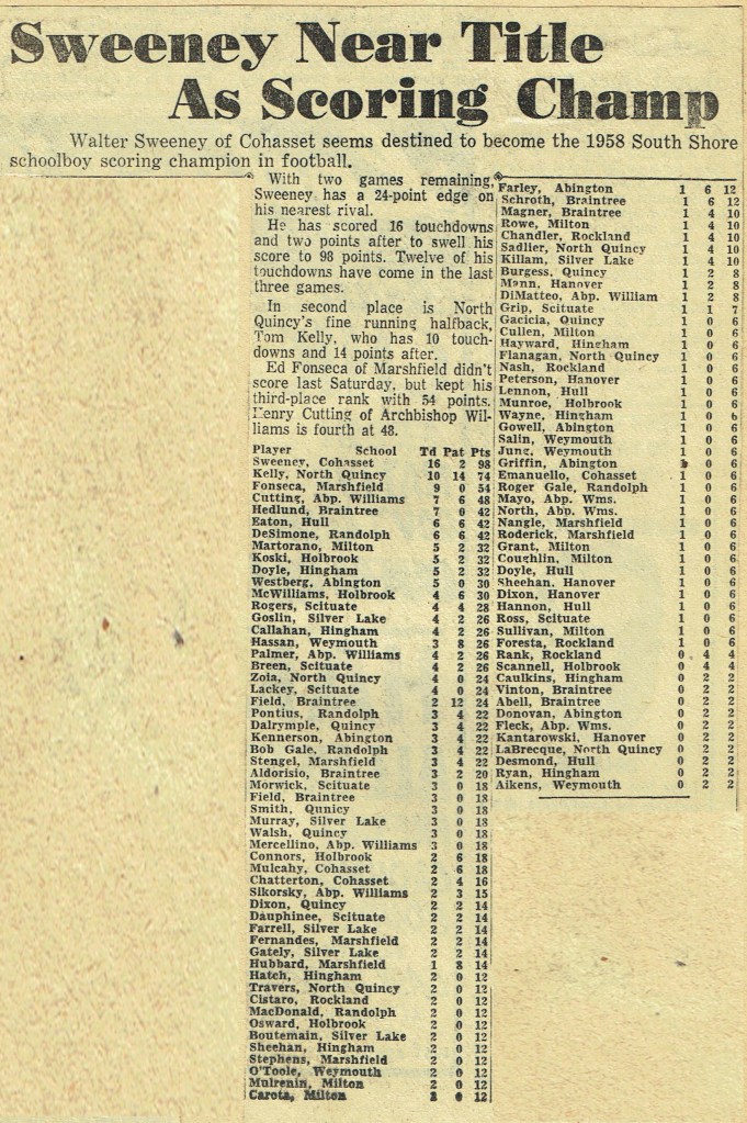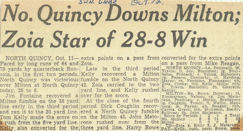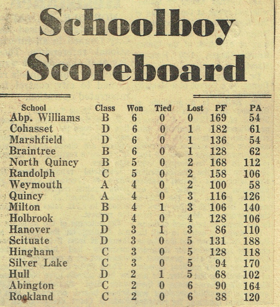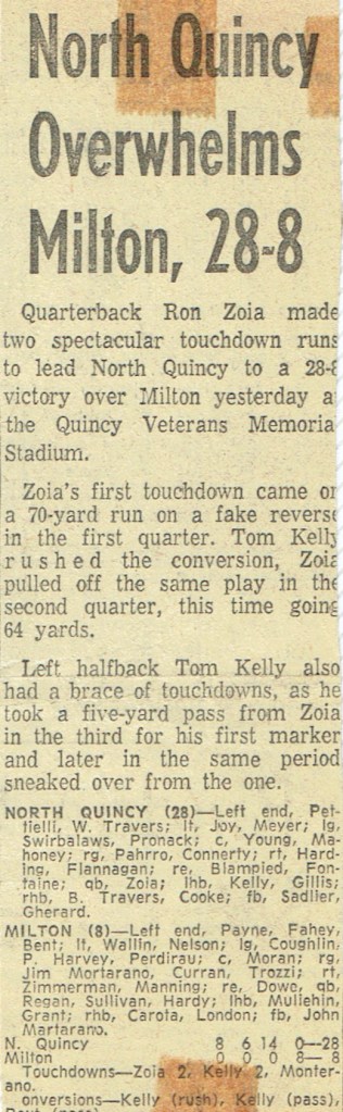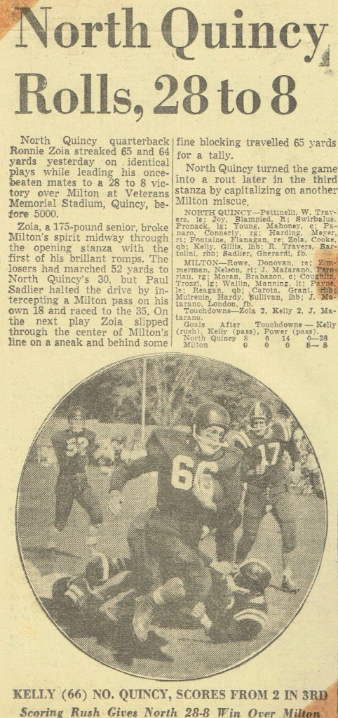 Game 2: North Quincy 28 – Milton 8 (October 11, 1958)
