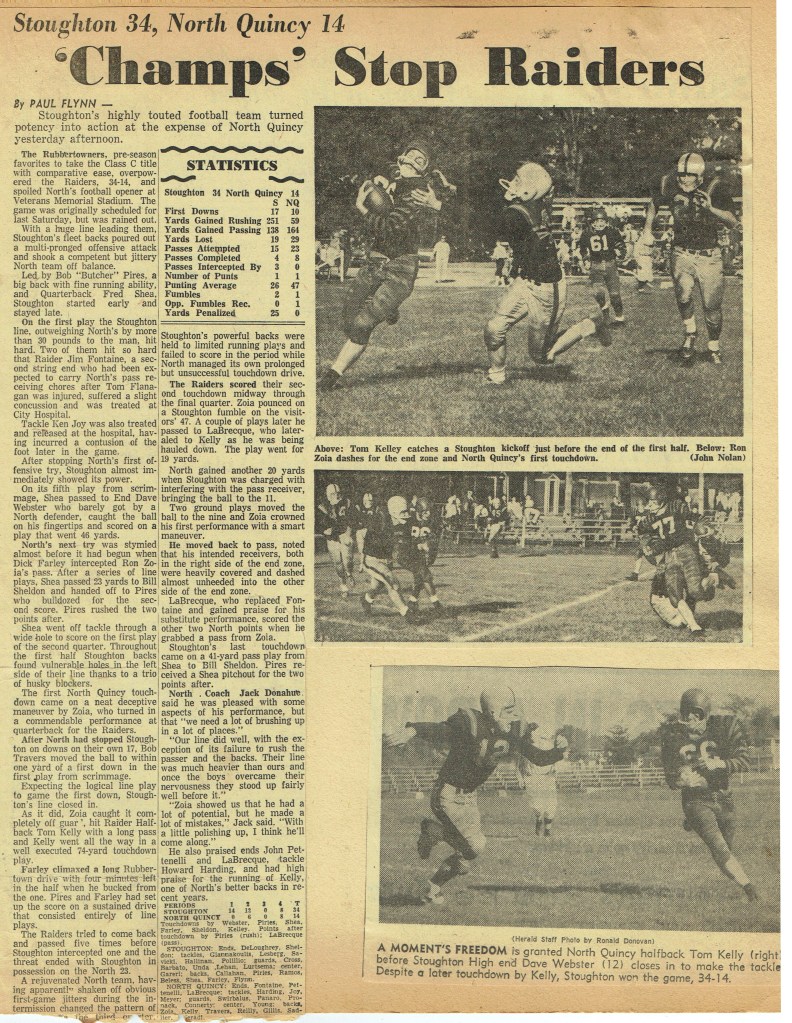 Game 1: Stoughton 34 – North Quincy 14 (September 29, 1958)