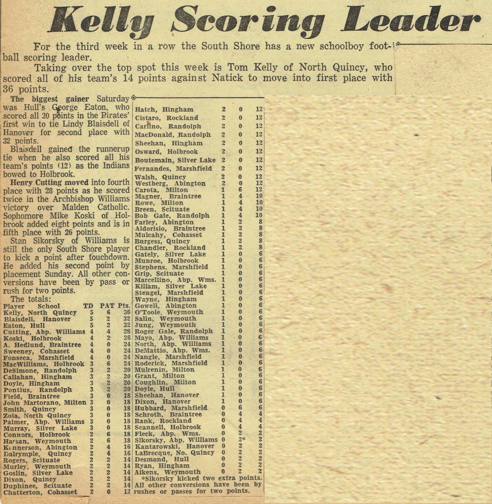 Game 4: North Quincy 12 – Hingham 6 (October 27, 1958)