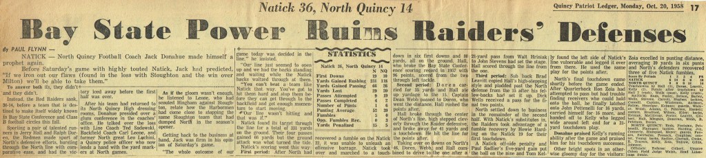 Game 3: Natick 36 – North Quincy 14 (October 18, 1958)