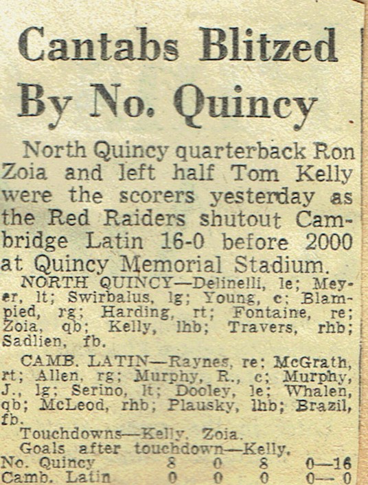 Game 5: North Quincy 16 – Cambridge Latin 0 (November 1, 1958)