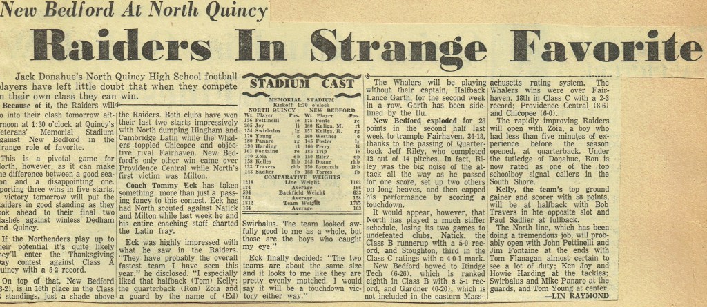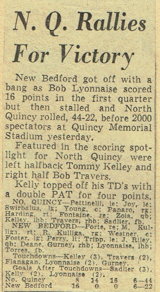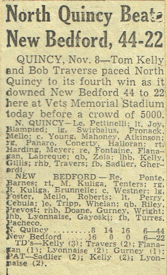 Game 6: North Quincy 44 – New Bedford 22 (November 8, 1958)
