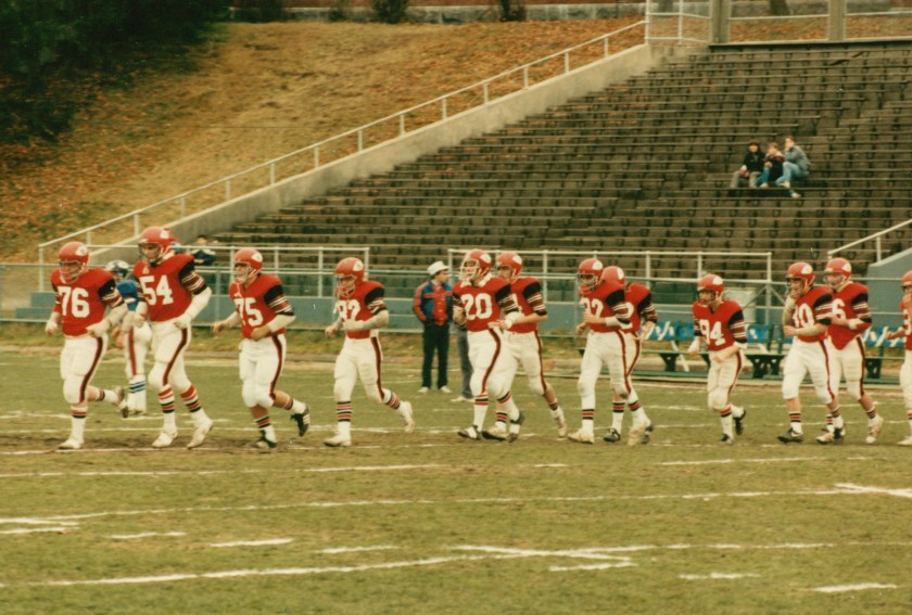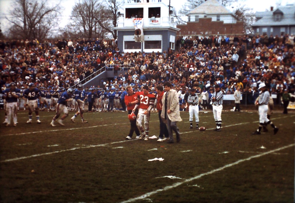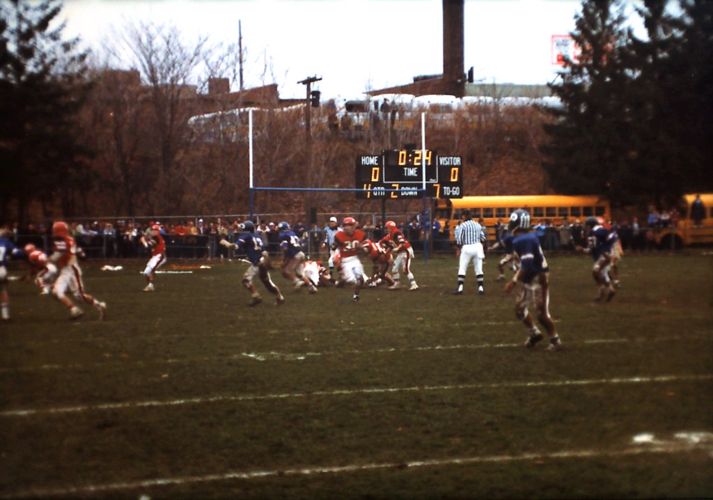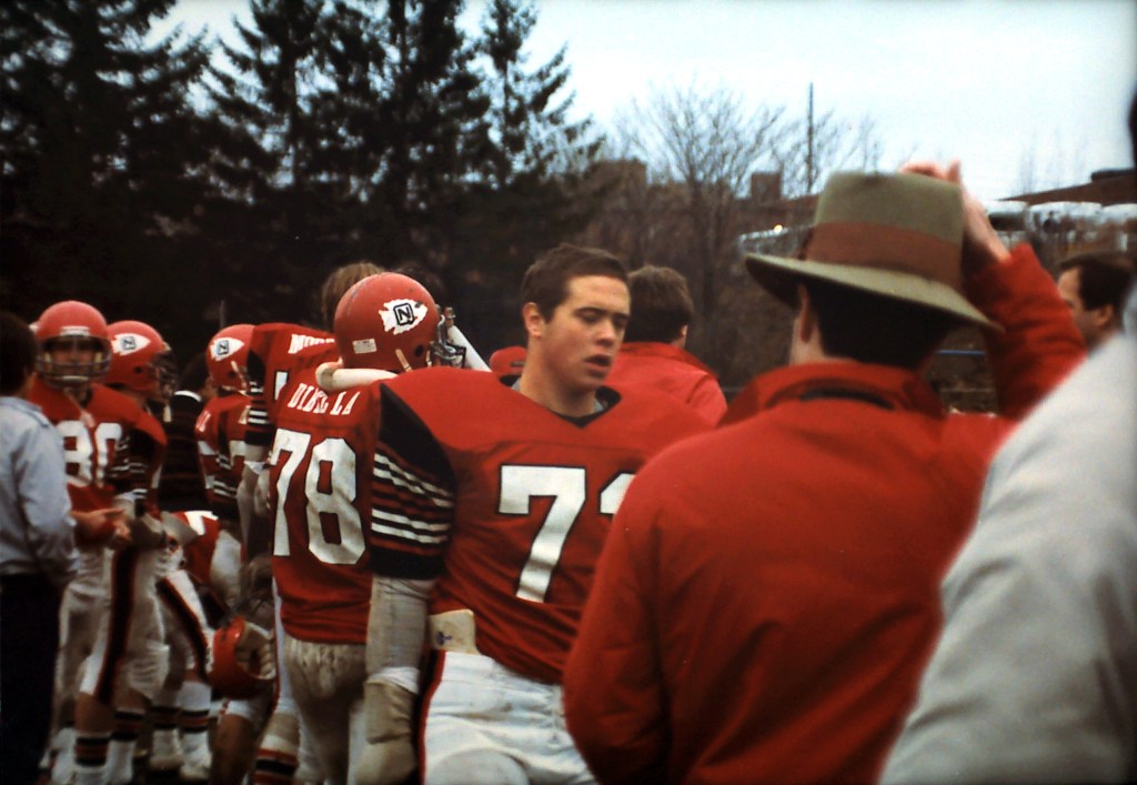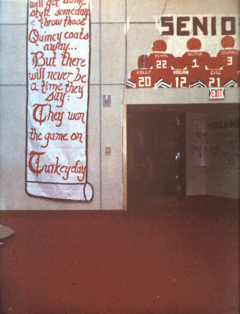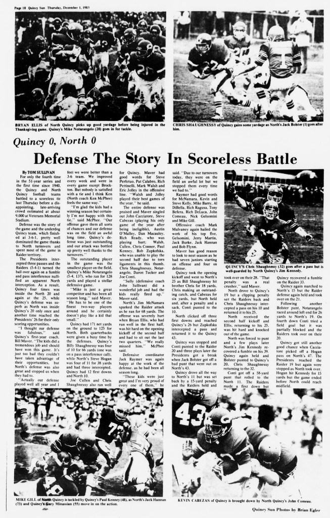 North carried a 5-4 record into the tilt with Quincy on Thanksgiving morning. Neither team could get their offenses cranked up, resulting in a 0-0 tie, the first since 1940. They key play for North was made by Kevin Kelly, as he nailed Quincy’s Mike Notarangelo in the backfield for a two yard loss on a third and two play from the North Quincy 11 yard line, stopping what looked to be a fourth quarter TD by Quincy.