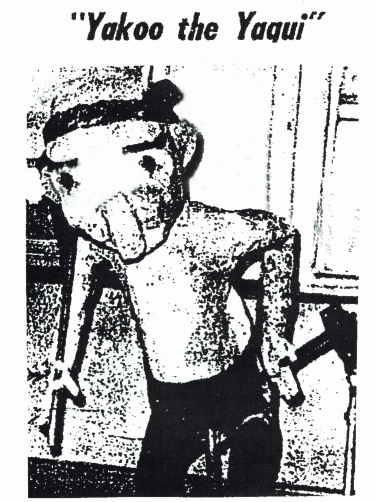 The “Yakoo” has been the North Quincy High School symbol and mascot for fifty years and over this time many have forgotten its origin and purpose. This is a history of the “Yakoo”, his creation, his reason for being, and why his creator designed the “Yakoo” as he did. These facts are to be told by the artist Pete Fredericksen and the model Al Yacubian.