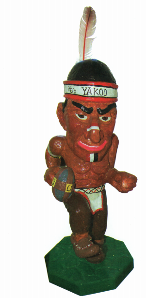 At the time of this report, the “Yakoo” is not being used as the school’s official symbol and all the banners carrying his likeness have been removed, however, the students still wear him proudly on yearbooks, shirts, team uniforms and jackets. Mr. and Mrs. “Yakoo” are still chosen annually. The tradition continues and like the original intent of the word mascot, it serves as an agent working its respective magic to achieve excellence.