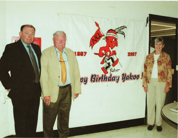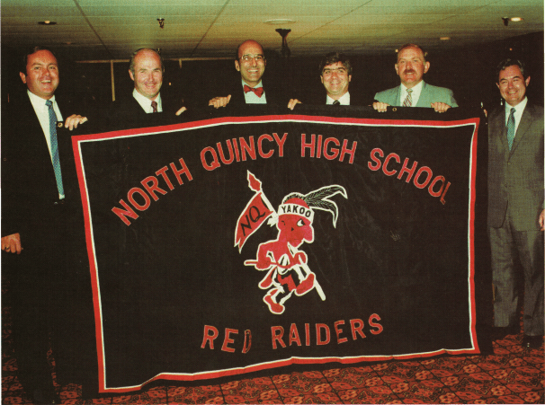 Times change and yet the North Quincy High School alumni of the thirties, forties and fifties have received and accepted the “Yakoo”. For this we recognize them for being very loyal to North Quincy High School, and supporting the “Yakoo”. A special thank you is given to the students of Quincy High School for their great support at a time when the “Yakoo” came under attack. We are rivals on the field but off the field we support each other as we all represent a great city. A huge thank you is extended to all the North Quincy Red Raiders past, present and the future for supporting and protecting the “Yakoo” and carrying on the great traditions of a truly great school, North Quincy High School.